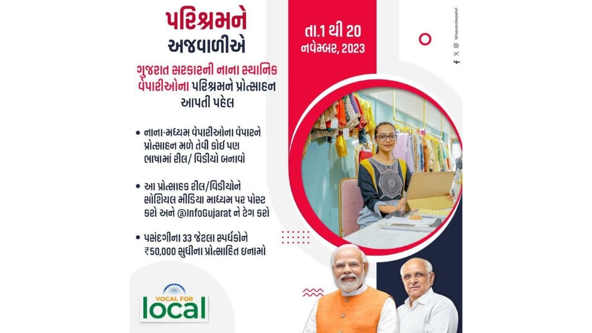 Anyone who wants to support small vendors can join the initiative. To participate, individuals are required to create a video or reel in any language that promotes or supports local businesses. Participants have to share their videos on social media platforms, tagging ‘@InfoGujarat.